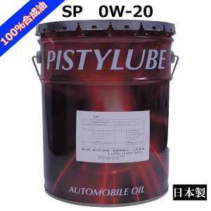 ハイブリッド車、省燃費車にピッタリ!!【日本製エンジンオイル】全合成油PISTYLUBE0W-20SP20L。適合車種 トヨタプリウス、ホンダフィット他。