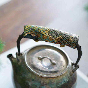 鉄瓶 持ち 手 カバー 急須 ポット ケトル 取っ手 布製 ハンドル 断熱 熱くない パッド 火傷 やけど 防止 綿 麻 茶道 イチョウ 柄