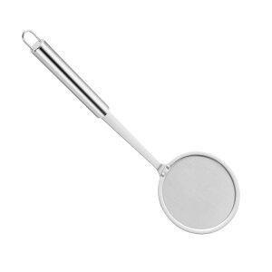 【調理中のあく取りに便利】煮物や揚げ物調理のあく取り・油のカス取りに便利なお玉。細かなメッシュデザインのため、小さい油カスもしっかりキャッチしてろ過します。油カス・あく取りはもちろん、粉ふるいや卵液のこし器としてなど