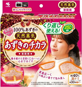 『100%あずきと緑豆(青あずき)使用の天然蒸気で温熱効果を実現』 『電子レンジで加熱するだけで簡単に使用可能』 『約40℃の温かさが約30分間続き、心地よい重みで首肩を包み込む』 『繰り返し約250回使用でき、経済的で環境にも優しい...