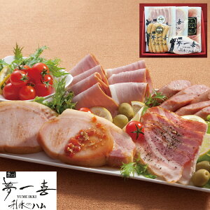 「夢一喜」 熟成 ハム・ウインナー 詰合せ 1980053内容量ロースハムブロック250g ロースハムスライス110g ベーコンスライス80g あらびきウインナー130g スモーク生ハム60g商品説明味付けには...