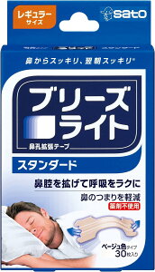 ブリーズライトは、プラスチックバーの反発力で、鼻腔を拡げる鼻孔拡張テープです。薬剤は使用していません。貼るだけ!通気率を31%アップ!(メーカー調べ)。肌色タイプ。レギュラーサイズ:17mm*55mm。内容量:30。