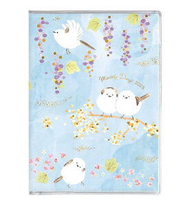 小さな幸せや宝物をテーマにした癒しの表紙がポイント♪ 商品外寸:約H150×W105×D4mm A6サイズ マンスリー(月間) 仕様:透明PVCカバー/糸かがり製本 4色印刷