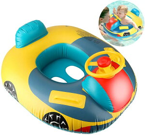 浮き輪 子供 ベビー 子供 うきわ ベビーボート 足入れ 胴回り 水泳リング 赤ちゃん 座付き 車の形 可愛い 1-6歳 子供用 水泳練習 強い浮力 ハンドル付き