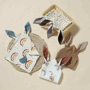 ・主な素材: 綿ガーゼ・カテゴリ: 動物・カラー展開: ハート、ピンクうさぎ、麦穂、深ブラウン水玉、小花柄、レオパード柄、ブラウンカートゥーン、レモン、ダークグリーンレインボー・対象年齢: 0〜3歳