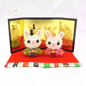 ■サイズ(約)… 1体:3×4cm 金屏風:10.5×5cm もうせん:9×6.5cm(完成サイズ) ■セット内容…アクリルビーズ・パール・Tピン・フラワービーズ・金屏風(中)・もうせん(中)・ひな壇柄和紙・テグス・作り図 ■準備する...