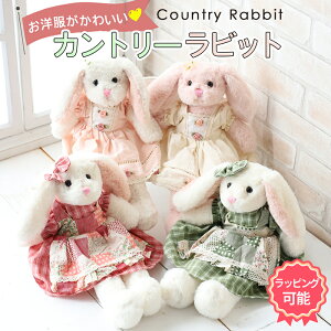 ワンピースがポイントのカントリーラビット パッチワークやナチュラルお洋服がポイントのうさぎちゃんぬいぐるみ ワンピースは脱ぐことも出来ます ふかふかなので思わずぎゅっと抱きしめたくなる柔らかさ 一緒に寝ても、抱っこしても、