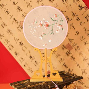 ・カテゴリ: 団扇・サイズ: 円形・工芸: 刺繍・骨組み素材: 木材・スタイル: 中国風・カラー展開: 金牡丹、桂花兎、海棠兎、荷香蜻蛉、淮北、牡丹、枇杷、玉蘭鳥、粉九尾狐、緑玉蘭、黄金鳳凰
