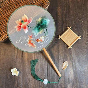 ・カテゴリ: 団扇・素材: 絹・サイズ: 36cm・工芸: 刺?・骨組み素材: 木製・スタイル: 中国風・贈答シーン: ギフト・ギフト用途: 個人ギフト・カラー: 双面刺? 蓮と金魚