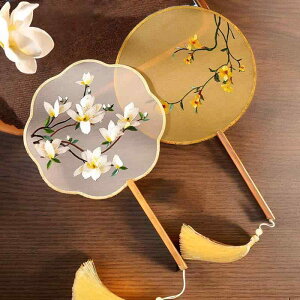 ・カテゴリ: 団扇・素材: 絹・サイズ: 円形・加工: 刺繍・骨組み素材: 木・スタイル: 中国風・カラー展開: 藍幽蘭, 粉寒梅枝頭, 藍竹葉, 緑幽蘭, 緑竹葉, 紫玉蘭, 粉杏花, 緑杏花, 紅蝶,...
