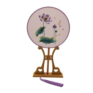 ・カテゴリ: 扇子・主な素材: 絹布・形状: 円形・技法: 印刷・骨組み素材: 木・スタイル: 新中国式・カラー展開: 曇花一夢(青紫)、曇花一夢(ピンク)、金桂玉兎(ピンク)、金桂玉兎(緑)、千里江山(円形)