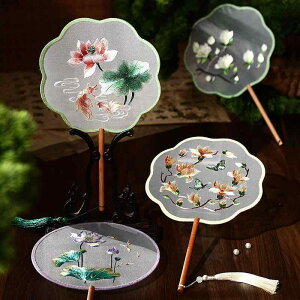 ・カテゴリ: 団扇・素材: 絹布・加工: 刺?・骨組み素材: 木製・スタイル: 中華風・デザイン: 両面刺繍の各種デザイン