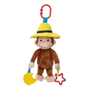 ジョージを引っ張るとブルブルしながら戻っていきます。 振るとカランカランと優しい鈴の音色がします。 帽子のつば部分には、赤ちゃんの大好きなカサカサ触感。 手にはジョージの大好きなバナナの形の歯固め付き! Cリングが付いてい