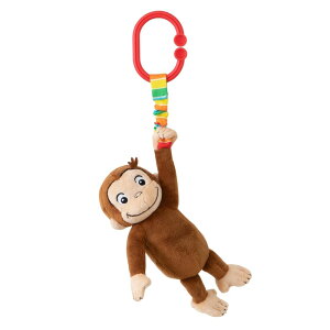 ジョージを引っ張るとブルブルしながら戻っていきます。 振るとカランカランと優しい鈴の音色がします。 帽子のつば部分には、赤ちゃんの大好きなカサカサ触感。 手にはジョージの大好きなバナナの形の歯固め付き! Cリングが付いてい