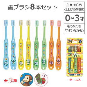 生えはじめ・仕上げみがきに。 0〜3才向けの乳児用歯ブラシ8本セットです。 コンパクトヘッドで握りやすいフォルムがポイント。 1本ずつに歯ブラシキャップ付き。 1本ずつ個包装してあり清潔に保管できます。 毛の硬さ:やわらかめ 関連