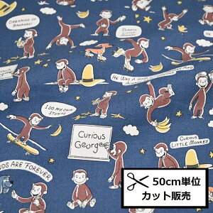 おさるのジョージ エンブレムのようなイラスト! どこを切り取っても絵になるかわいい オックスプリント生地です おさるのジョージ 博士 オックス 生地 布 布地 入園入学グッズ キャラクター KOKKA...