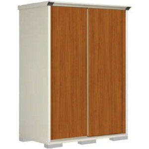 落ち着いたブラウンカラーの小型収納庫です。 軒下、勝手口の脇などに気軽に置けるサイズです。 ガーデニング用品、掃除用品、ポリタンク等の収納に最適です。 高さ調節可能なスチールの棚板が2枚付いており、 左右どちら側にも5段階の