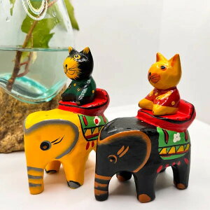 現在開催中の楽天ポイントキャンペーン♪ サイズ 幅7cm奥行3cm高さ10cm ゾウのカラー ・イエロー ・ブラック 主素材 天然木 コメント 可愛い象さんに乗って旅に出ます・・・なんとも可愛らしいゾウ乗りネコちゃんです。 お待たせい...