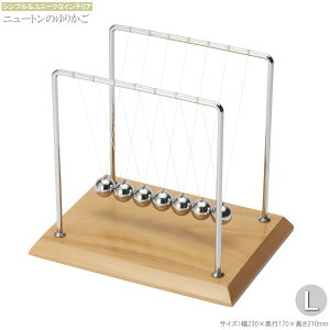 インテリア雑貨 ニュートンのゆりかご 規格L ボール数7個 ●シルバーメタリックとナチュラルウッドの異素材の組合せが、洗練したお洒落なムードを演出する物理系のインテリア雑貨です。 ●同じ重さの複数の金属の玉を吊るし、片端の玉を