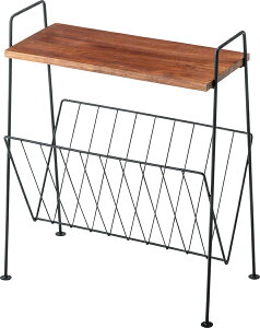 天然木とスチールを組み合わせたサイドテーブルは、リビングや寝室、カフェなど多様な空間に調和します。天板はカップや本を置くのに最適で、V字型マガジンラックは雑誌の収納に便利です。安定感を重視した設計で、床を傷つけない脚先