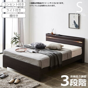 商品について ■商品の特徴 シンプルだけど機能満載なベッドフレーム。 3段階の高さ調整が可能な床板です。 床板は通気性が良いすのこタイプを採用しました。 フレグランスやスマホのちょい置きに便利な棚付き。 2口コンセントはほこり
