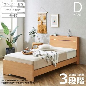 インテリア ベッド フロアベッド ベッドフレーム おしゃれ 抗菌 防臭 2口コンセント付き すのこ ダブルサイズ 開放感 ホワイトオーク