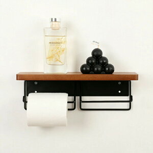 【商品概要】おしゃれなデザインのトイレットペーパーホルダーですカフェやバーなどのインテリアにも溶け込むスタイリッシュさがありますもちろんご自宅への設置もオススメですホルダー上部は木製トレイとなっており...
