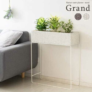 美しいラタンが空間を彩ってくれるプランタースタンド『Grand(グラン)』。天板部分は約55cmと背が高めなので、水やりなどのお手入れも手が届きやすくとてもラクに。ポリエチレン製の人工ラタンは丈夫で水を弾くので玄関先などでもご