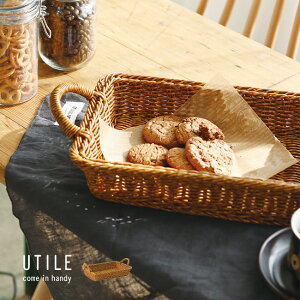 トレイ L 92240006の解説 ラタン風のおしゃれな手編みのバスケットトレー。 食品を直接置くことが出来るトレイです。焼きたてのパンやクッキー、おしゃれな朝食など乗せてお使い頂けます。持ちやすいハンドル付きなのでベラ