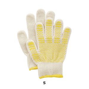 商 品 説 明 品質 綿100%(本体)+ゴム糸(手首部)スベリ止め部:塩化ビニール サイズ・手首の色 SS(オレンジ) S(イエロー) M(グリーン) L(ブルー)※詳しい寸法は上記「サイズ一覧」をご参照下さい。 特徴 ●スベリ止め付なの
