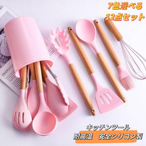 ?一感のある配色 キッチンツール12点セットフライ返し、おたま、トング、泡立て器、スパチュラとスプーンなど台所用品は軽くて丈夫な上にかわいい見た目、いつも綺麗に見えるキッチンを演出。和食ではなく、洋風料理、炒め物多いの中華