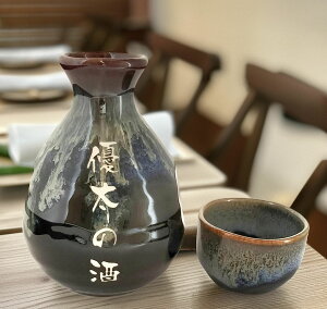 商品情報 【美濃焼 片口シズル酒器3点セット】 片口酒器と盃にお名前やメッセージを彫刻いたします いつもと違ったお酒を楽しめる世界にひとつの贈り物です 受け皿の上に片口と盃を置いてお酒を注ぐと、片口から溢れ出たお酒が盃にせ
