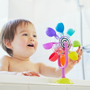 新/-/-・Color:新・クルクル回すと色がつながって虹のよう カップに水をかけるとクルクル回り虹のように見えるので赤ちゃんの興味をひきつけます。吸盤をお風呂の壁や、ふちに固定すると観覧車あそびや水車あそびが楽しめます。商品紹介