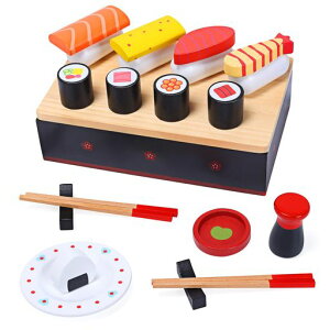 【おままごと和風寿司セット】この寿司セットは、4つの精巧な寿司、4つの美味しい海苔巻き、可愛らしいおにぎり、そして一式の食器を含んだ、精巧にデザインされたごっこ遊びの食材です。各寿司は、形状から具材まで、日本の特色が豊