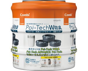 W防臭タイプ◆商品名:COMBI コンビ 紙おむつ処理ポット 強力密閉抗菌 おむつポット ポイテックシリーズ 共用スペアカセット W防臭 3個パック(旧型ポイテック/ポイテックアドバンス/ポイテックW防臭...