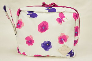 kids/リボンハッカキッズ スミレシリーズ 花柄プリントシリーズ お花好きのママにも嬉しいデザインの オムツポーチ 紙おむつが約3枚入る容量で おしり拭きも入るポケット付き 左右どちらからでも開閉できる ダブルファスナーで使