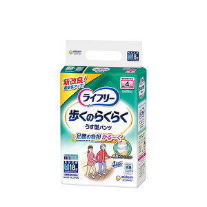 【商品情報】●高齢者の歩行特性に考慮した機能で歩くのがらくになる紙パンツ。【商品仕様】●サイズ(約):M(ウエスト65−85cm)●入数:18枚●吸収回数:おしっこ4回分(約600ml)【注意事項】【使用方法】[キーワード]ライフリー歩く