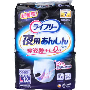 『ライフリー 夜用あんしんパンツ 7回吸収 Lサイズ 12枚入』衛生用品 介護用品 大人用紙おむつ 消臭 男女共用 商品紹介 夜専用設計で寝姿勢モレ0(ゼロ)へ パワー消臭 トリプル効果 ※アンモニア...