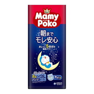 マミーポコパンツから夜用パンツが新登場。 おしっこ5回分の吸収パワーで夜モレあんしん。 さらに夜限定デザインで、寝る前に楽しくおむつ替えできます。 3つのギャザーが足回りにしっかりフィットし続けるから、ずーっとすきまモレ安心。 (c)...