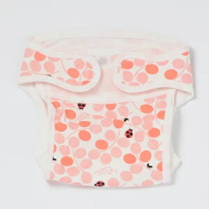 お花とてんとう虫のコラボ♪カラフルなポップ花柄★ ●デリケートな赤ちゃんのお肌に優しいコットン100%素材のおむつカバーです。 ●股部は二重構造で横漏れを防ぎます。 ●股関節脱臼予防型の外ベルト仕様。 ●腹部の