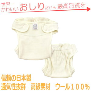 【送料無料】安心の日本製 通気性抜群 高品質 ウール100% おむつカバー 外ベルトタイプ 1枚 カラー:ベージュ 適応サイズ目安:50 60 新生児〜6ヶ月ごろの赤ちゃん 湿気だけを逃がし、オシッコはしっかりガード...