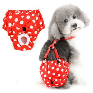ZUNEA 犬用 オムツパンツ 女の子 おむつ 小型犬 生理 サニタリーパンツ サスペンダー付き 可愛い 蝶結び付け 水玉柄 月経 生理マナーパンツ メス 柔らかい 発情期用 洗える ペットドッグウェア...