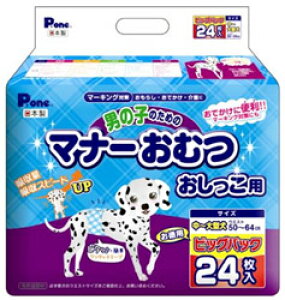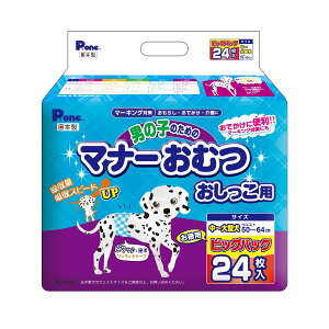内容等予告なく変更する場合がございます。予めご了承ください。 名 称 P.one 男の子のためのマナーおむつ おしっこ用 中〜大型犬用 ビッグパック PMO-709 内容量 24枚 特 徴 ◆おでかけに便利!マー