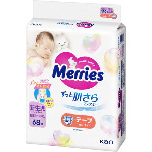 『メリーズ エアスルー テープ 新生児用5000gまで 68枚』ベビー トイレ用品 紙おむつ 消臭成分配合 テープ式 内容量:68枚 JANコード 4901301437693<br...