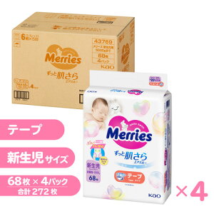 花王 メリーズ エアスルー テープ 新生児用5000g まで 68枚入り×4個入 紙おむつ