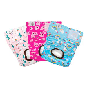 愛犬のための生理用パンツ:メスの愛犬の生理時に使用する生理用パンツです。内側に生理用パッドを挟むことができ、生理中の愛犬が家の床や家具、車のシートなどを汚してしまうのを防ぐことができます。また、発情期の予期せぬ妊娠を