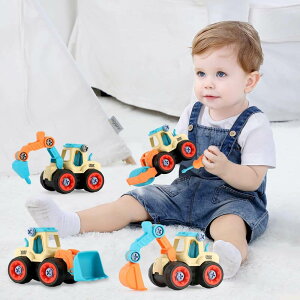 商品情報【 組み立てできるのDIY建設車両セット】レンチ付き ねじ、タイヤなどの部品を取り外しでき、ショベルカー ボール盤 ローラーカー ブルドーザー 4種類の建設車両のを組み立てできます!子供は自分の認識によって 自由に想像して