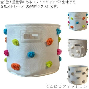 全3色!重量感のあるコットンキャンバス生地でできたストレージ(収納ボックス)です。ポンポンのデザインが可愛く、散らかりがちなお子様のおもちゃやブランケットなどを入れてお部屋やリビングに置くだけで整理ができておしゃれに...