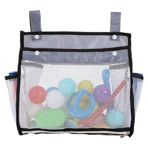 【商品概要】 お風呂で使える収納メッシュネットです。 散らかったおもちゃなどをスッキリ収納できます。 また、通気性が良いのでカビやぬめりを防ぎます。 小分け収納ができる小さめポケット3つと...