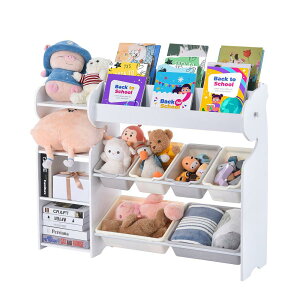 【上段ラック】複数の本を同時に収納でき、お気に入りの本をすっかり収納できます。読みたい絵本がすぐに見つかるから、楽しく選ぶことができます。 【たっぷり入る収納力】絵本、おもちゃなどの散らかりがちな小物をたっぷり収納でき